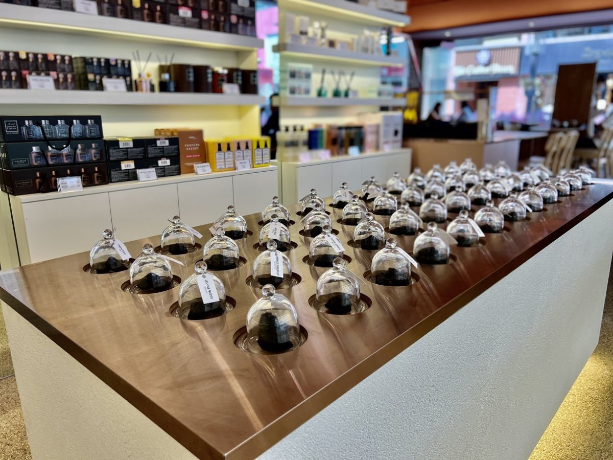 もちろんKUNDALのケア商品も店内で購入可能で、カフェの奥には商品を実際に触って香りを試せる空間もあります。香りが良いことで知られるKUNDALの人気ラインナップがズラリと並び、すべての香料が体験できるようになっています。
