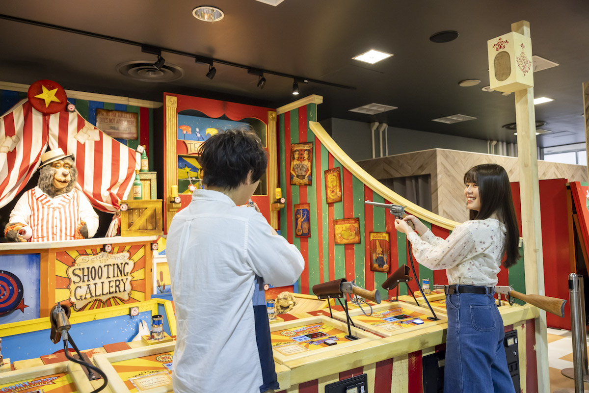 オールドアメリカンの街並みを感じられるゲームエリアが「ウエスタンゲームハウス」。古きよきアメリカの西部開拓時代をモチーフに、シューティングゲームを中心とした12種類のアーケードゲームが楽しめます。ゲームに成功してさまざまな景品を獲得しちゃいましょう!
