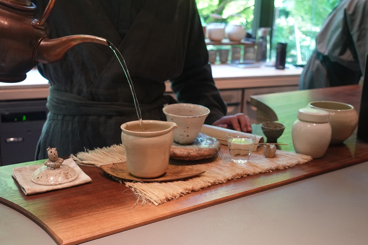 なんと専門のスタッフさんが、目の前で丁寧にお茶をいれてくれるんです。所作も茶器も、とても美しくてうっとり。このお茶のサービスは宿泊料金に含まれているのも嬉しいポイントです。