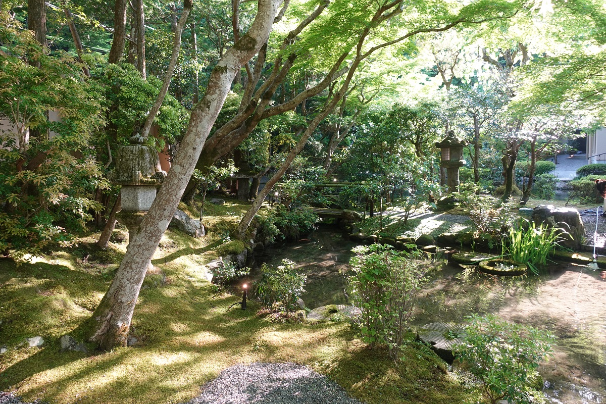 お庭は、お散歩することもできます。西陽が差し込むと、また一段と美しく…。個人的にお庭が好きで京都のお寺を巡っているのですが、宿泊中ずっと堪能できるなんて贅沢だなと思いました!