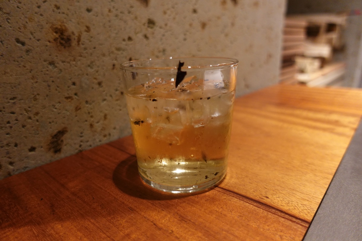 まず、一杯目には、珍しい“煎り番茶のジントニック”を。お茶が一つのテーマになっているからこその素敵な発想で、スモーキーな香りと、香ばしさがたまらない…!この後の燻製料理との相性も抜群でした。