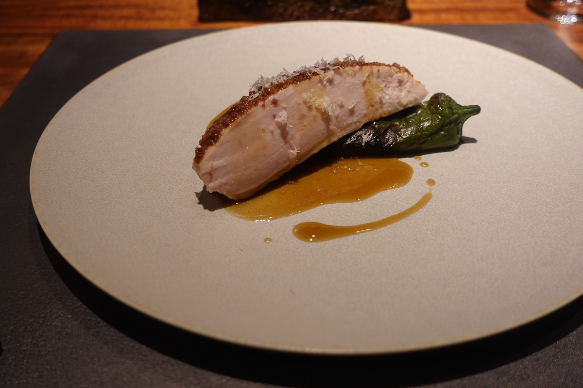 メインは、京赤地鶏と万願寺唐辛子。余分な脂肪がないのが特徴の鶏で、さっぱりといただくことができました。何より、窯で焼かれているからか、甘みもでて、皮がカリっとしていておいしかった…!