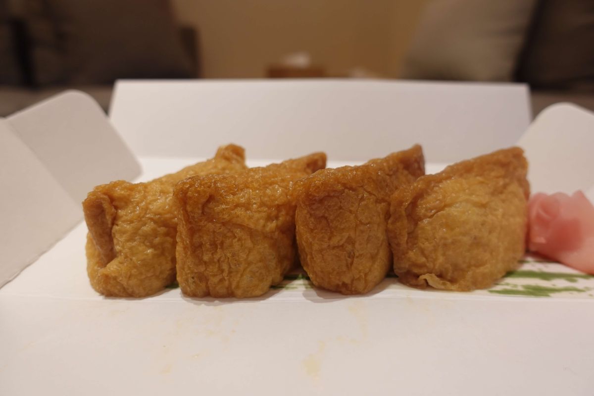 「さあ満腹になったし、お風呂にでも入って寝るか~」と思っていたら、なんとお食事の最後に、お夜食の「おいなりさん」をいただけました。最高!!