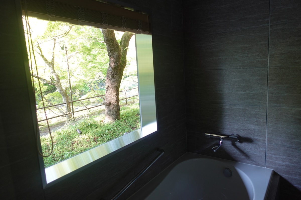 お風呂も、お庭に面しているので、お庭を眺めながらゆったりくつろぐことができました。極楽~!