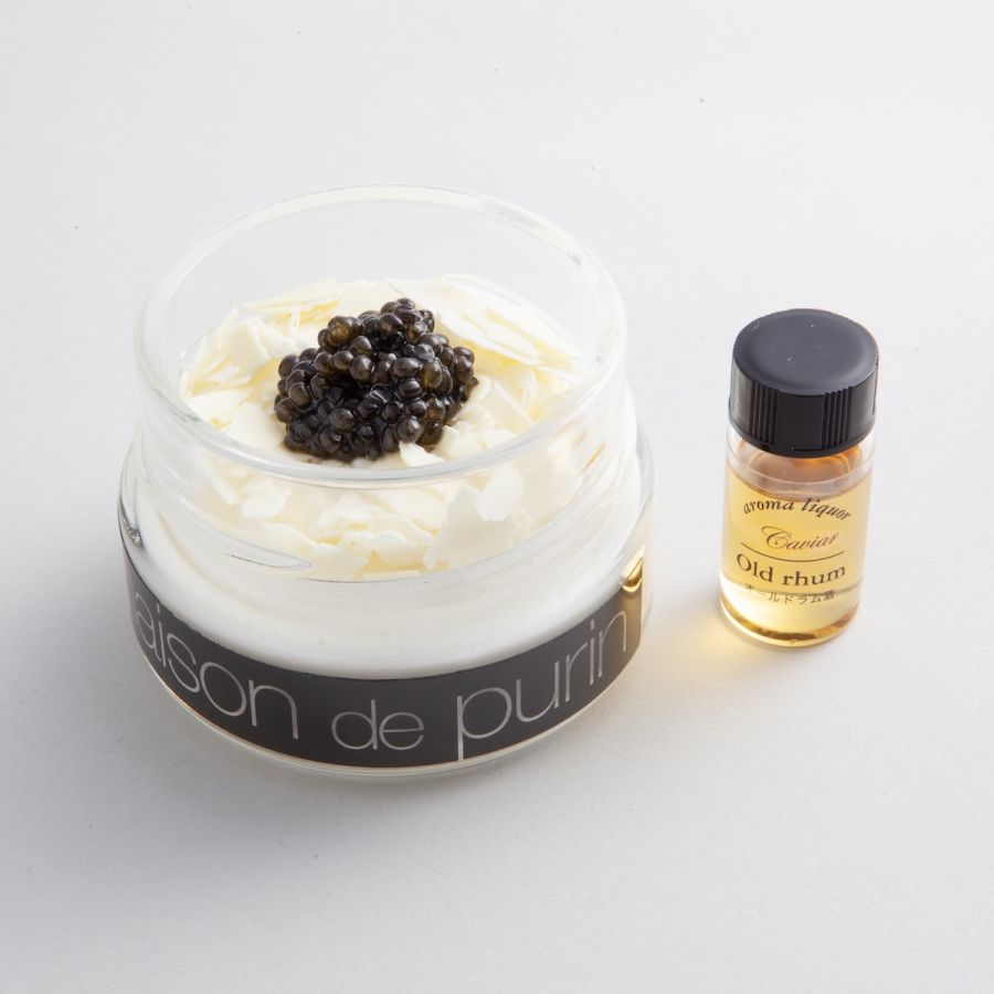 商品は「キャビア」「トリュフ」「チーズ」「甘酒」「生姜」の 5つ。「キャビアプリン」1500円はサワークリームの酸味、ホワイトチョコレートの甘味、さらにキャビアの程よい塩気が後を引くプリンです。カリブ海に浮かぶマルティニーク島の「熟成ダークラム」を添えています。それぞれが素材の魅力を引き出し、響き合う、新しい感覚体験。お好みでシャンパーニュとお楽しみください。