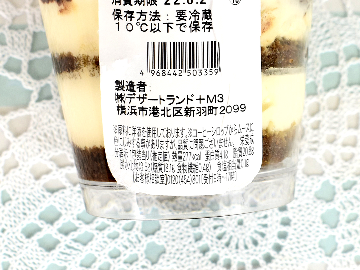 続いてティラミスムースの層は、濃厚なマスカルポーネの味が絶品。甘いクリームの中でマスカルポーネの塩味がいいアクセントになっています。舌触りも滑らかで、ボリュームのある深めのカップで食べごたえ抜群ですが、一気に完食することができました。