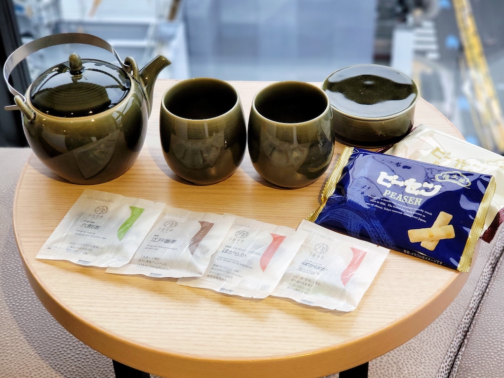 部屋には、1899ブランドの10種類の日本茶の中から日替わりで4種類が、急須と湯のみと一緒にセットされています。
