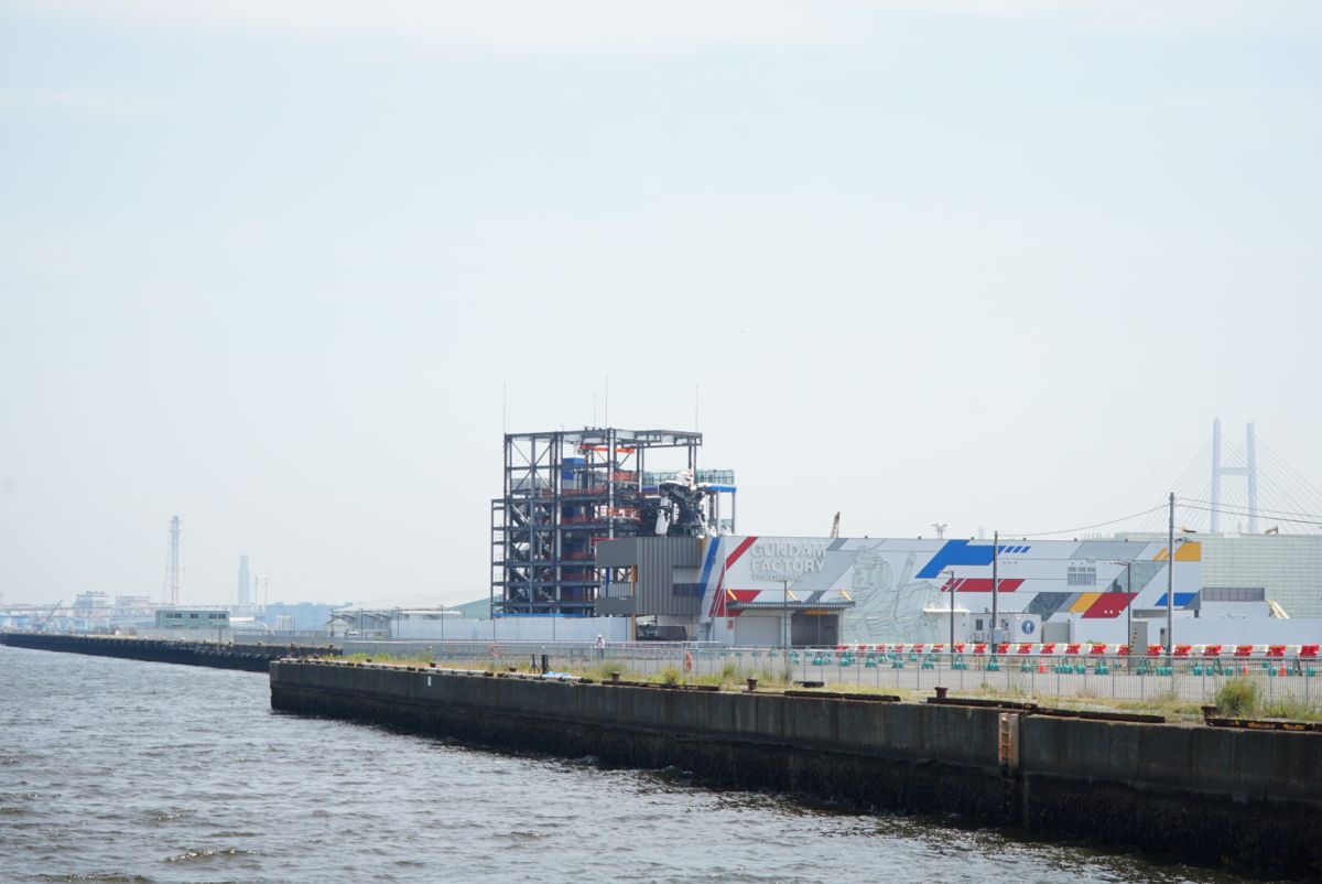 園内からは2023年3月31日(金)まで山下ふ頭でオープンしている「GUNDAM FACTORY YOKOHAMA」もチラリ。