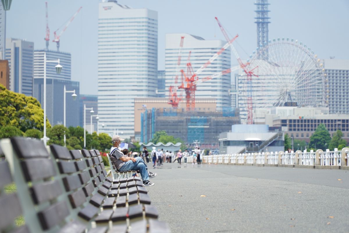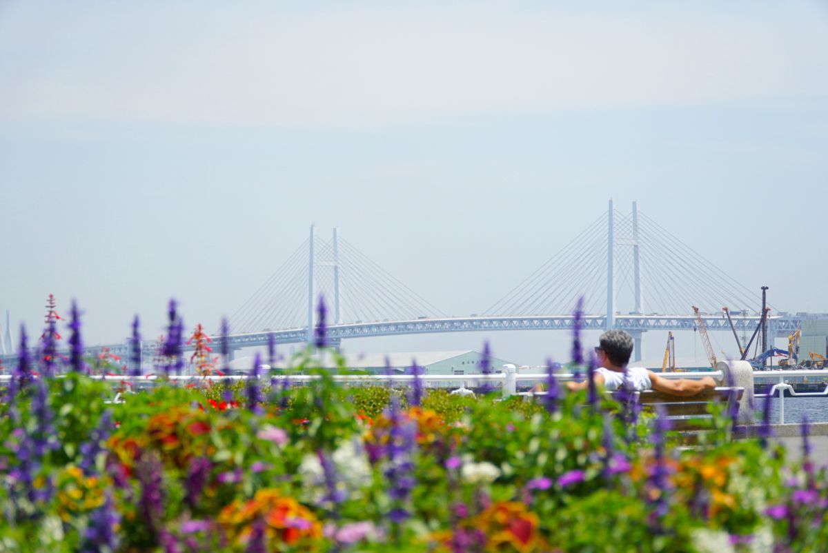 ベンチからは横浜港の壮大な海やみなとみらいの景色、横浜ベイブリッジといった絶景をひとり占め。最高にぜいたくな空間です。