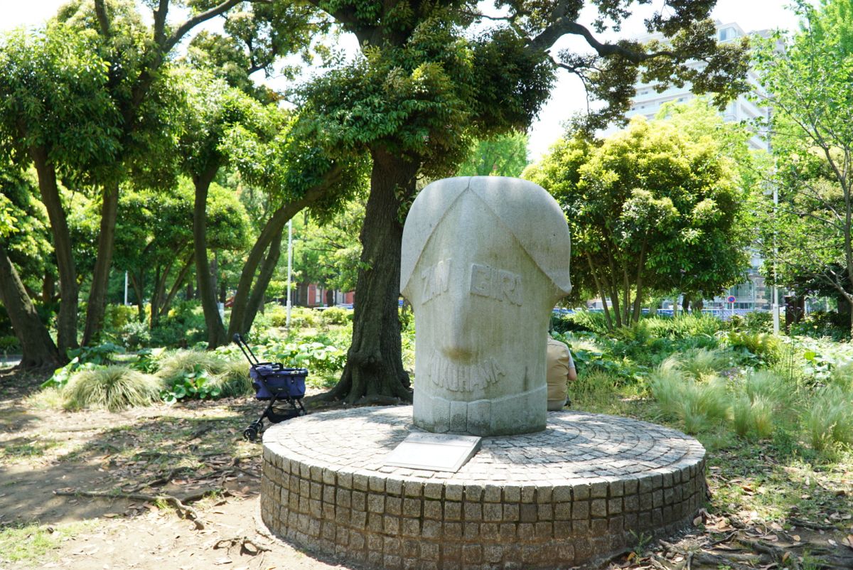 これは、明治の始めに詠われた歌の一句。政府の断髪令に先駆け、明治2年(1869)に横浜に日本初の西洋理髪店が誕生したことを記念して建てられた碑です。欧米風である「ザンギリ頭」は文明開化の一翼を担ったといいます。