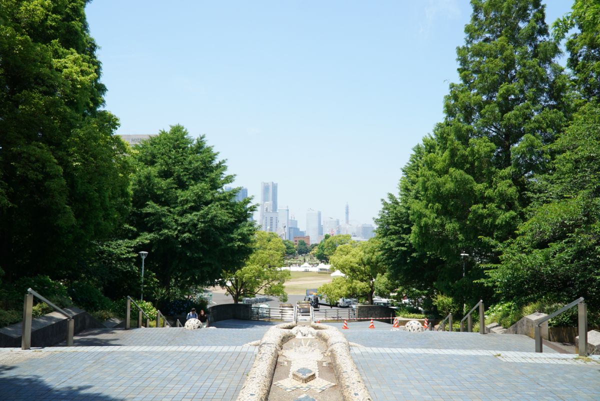 公園を東へ進んでいくとたどり着くのが、「水の階段」。見晴らしのいい高台になっていて、イベントなどが行われる「おまつり広場」やみなとみらいの景色を眺めることができます。