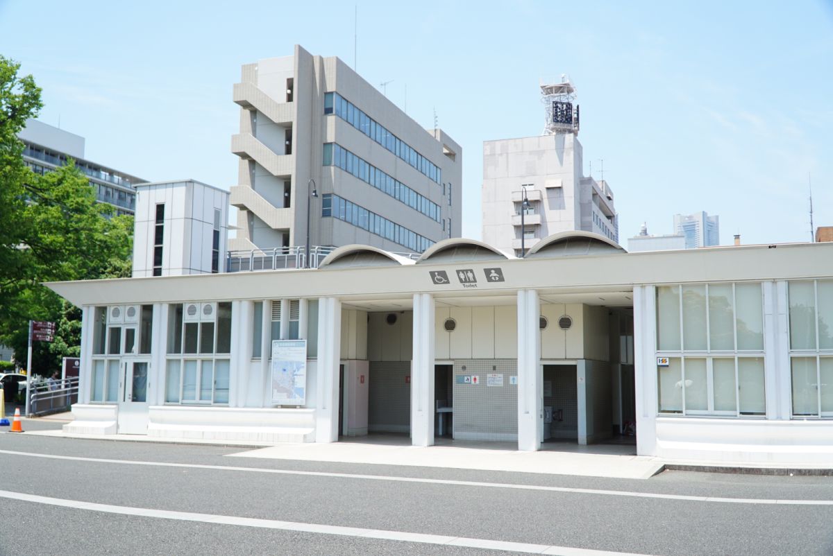 園内にはトイレが3カ所あります。みなとみらい側には、写真のレストハウス内にトイレを設置。レストハウスには今後休憩スペースやテイクアウトの飲食店などもオープンする予定とのこと。ますます山下公園から目が離せません!