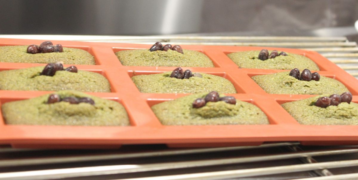 店内にただよう甘い香りに誘われ、特別にキッチンをのぞかせてもらったところ、ちょうど抹茶味のフィナンシェが焼き上がったところでした!