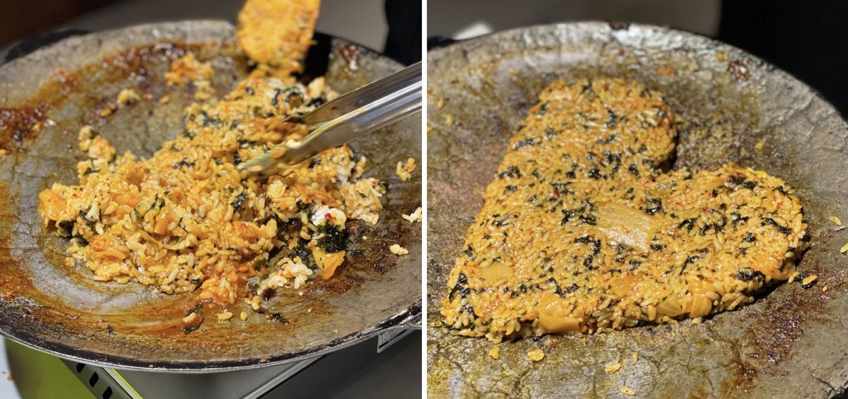 これも注文すると店員さんが目の前で炒めてくれるのでご安心を。今回は、新大久保で働いていたベテラン店員さんがハートの形にしてくれました♪