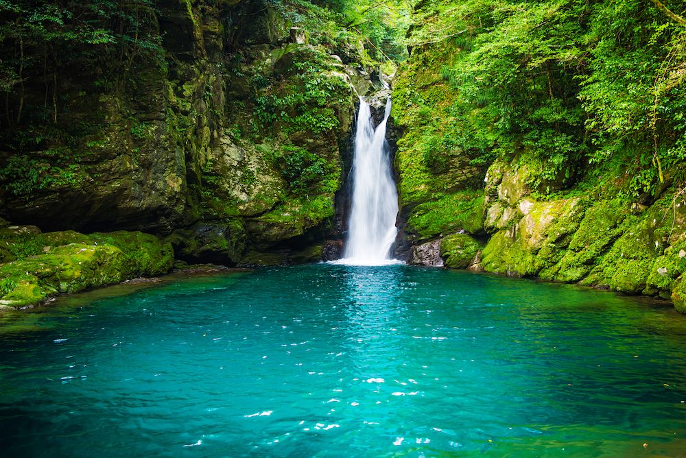 仁淀川の支流、枝川川にある幻想的な滝壺です。古くから水神の化身となる大蛇がすむと伝わり、水面の色は光の角度や加減によって異なる神秘的な滝。神聖な場所なので、マナーを守って静かに観賞しましょう。
