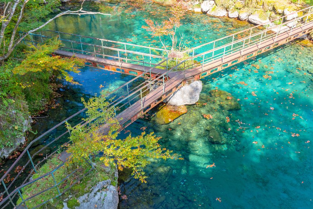 太陽光が差す時間帯は水中がより澄んで見えるのでおすすめです。紅葉のシーズンも見ごたえあり!