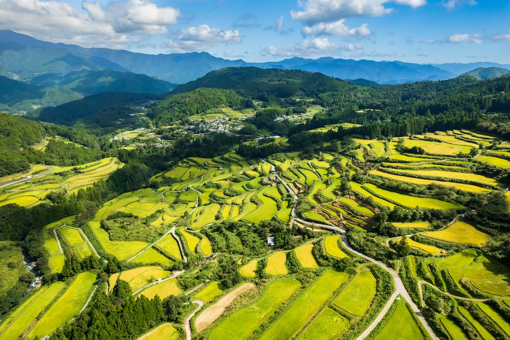 おすすめは棚田が一面黄金色に輝く9月ごろです。夕日と一緒に眺めれば、日本の原風景に胸が熱くなるはず!