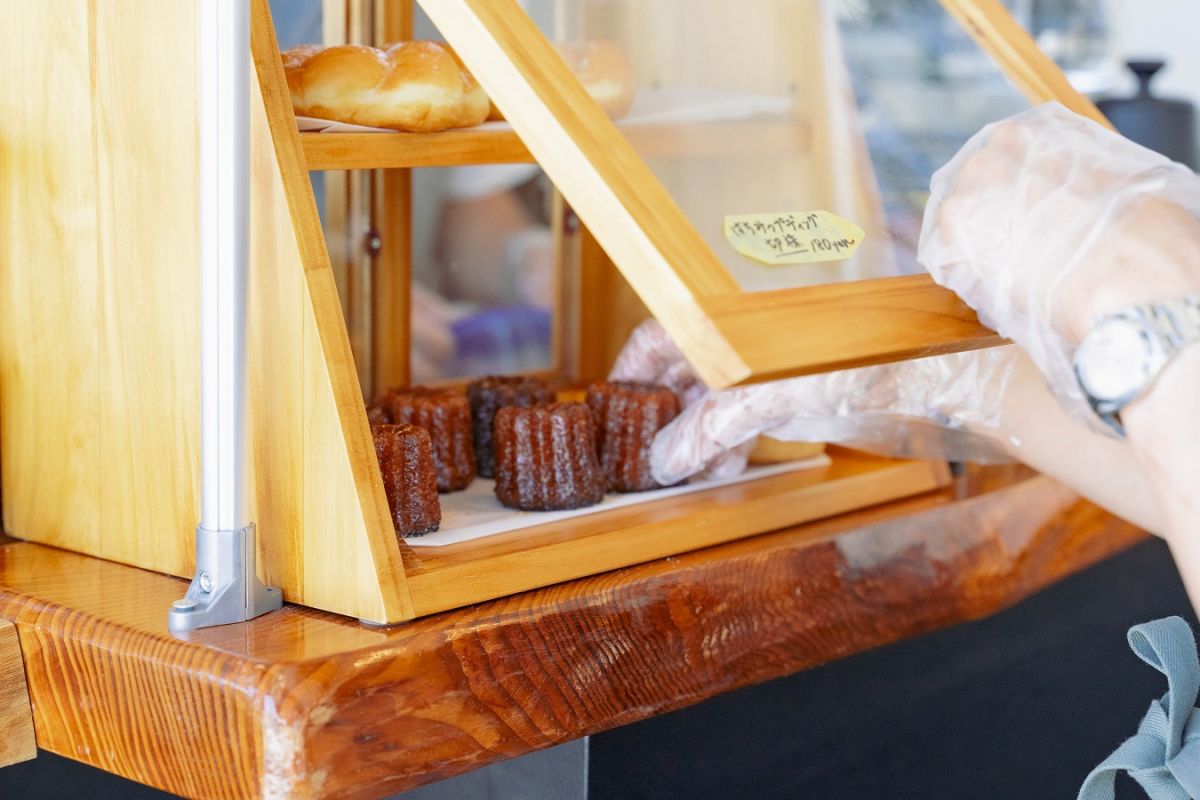 甘いおやつ気分なら、ショーケースに並んだベイクドスイーツからチョイスを。日によって内容が変わり、この日はドーナツやカヌレがお目見え。はちみつプディング仕立てのカヌレは、むっちりおいしいのはもちろん、1個198円というお手頃価格も魅力です。