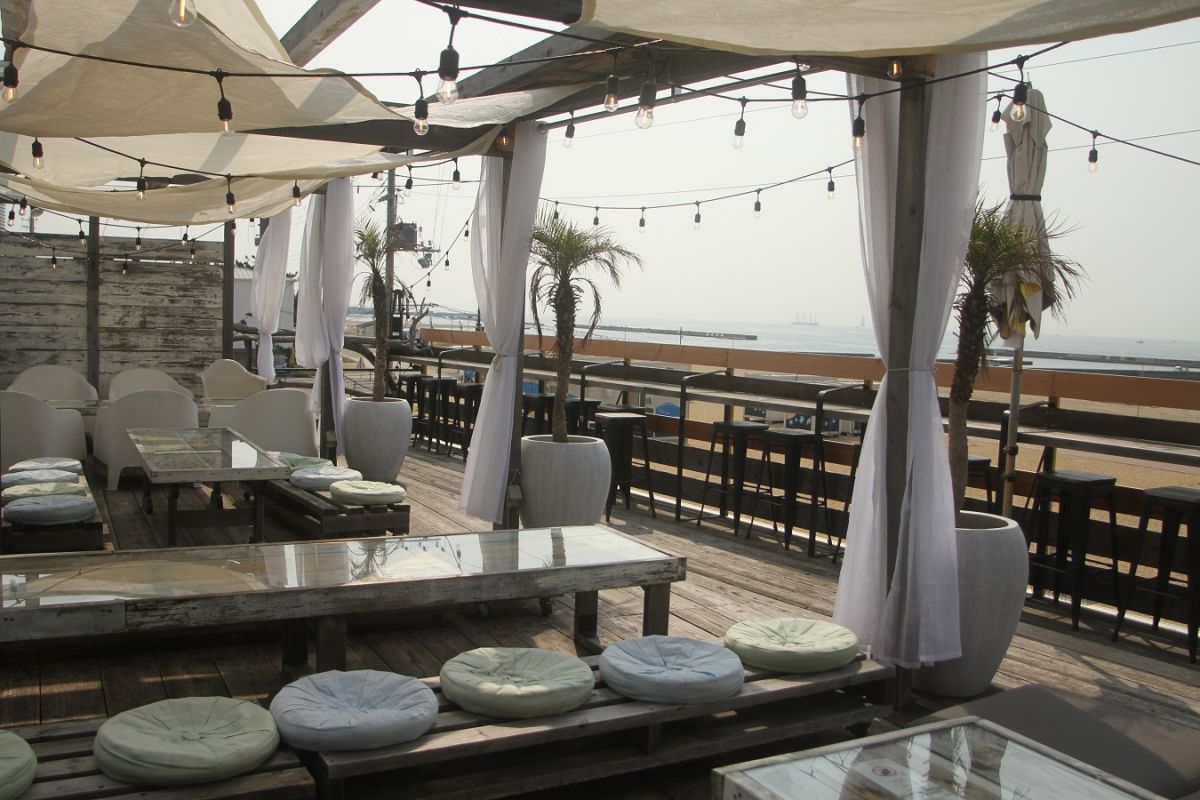 1階と2階のテラス席は水着のままでも利用できるので、夏場は須磨海岸へ遊びに来た海水浴客で賑わいます。また、1階のテラス席はペットの同伴も可能です。