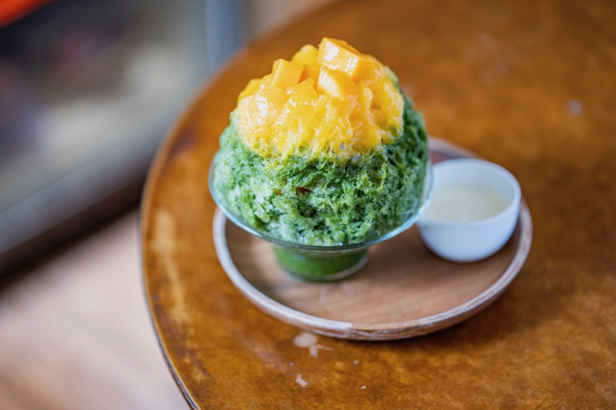 甘みと苦みが絶妙に入り混じる完熟マンゴー×宇治抹茶のかき氷