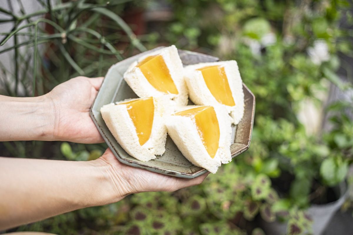 いつものパン屋から仕入れたふわふわの食パンと軽めのクリーム、その真ん中に熟れたマンゴー。マンゴーそのものの美味しさが活きた甘すぎないクリームのサンドで、見た目もお味も大満足です。愛文マンゴーの季節(4~7月ごろ)のみの販売で、数量限定。人気なので予約必須です。
