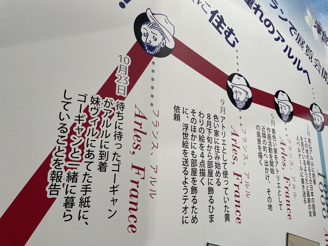第2会場では、ゴッホの生涯を年表と手紙で紹介