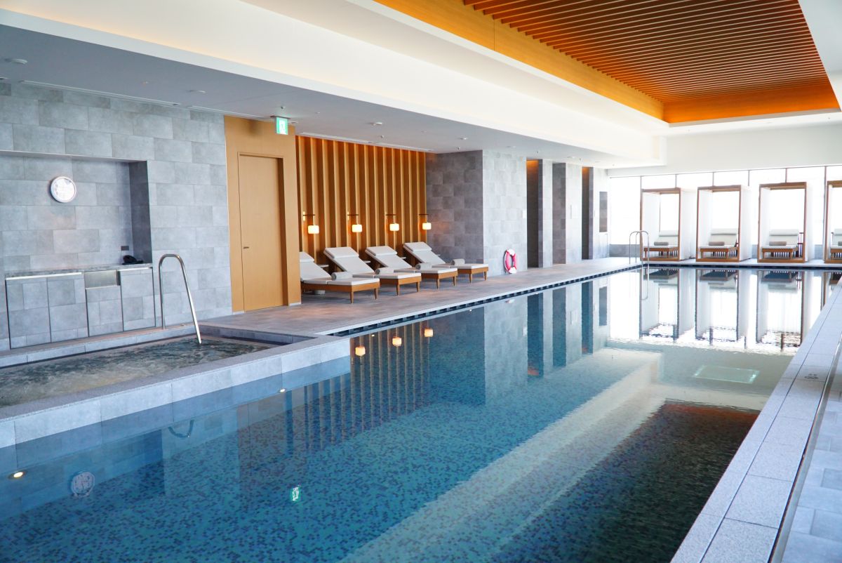 長さ20mの屋内温水プールは、ジャグジー、サウナ、スチームバスが利用可能。窓が大きいため、ここから眺める夕日や朝日もおすすめなのだとか。
