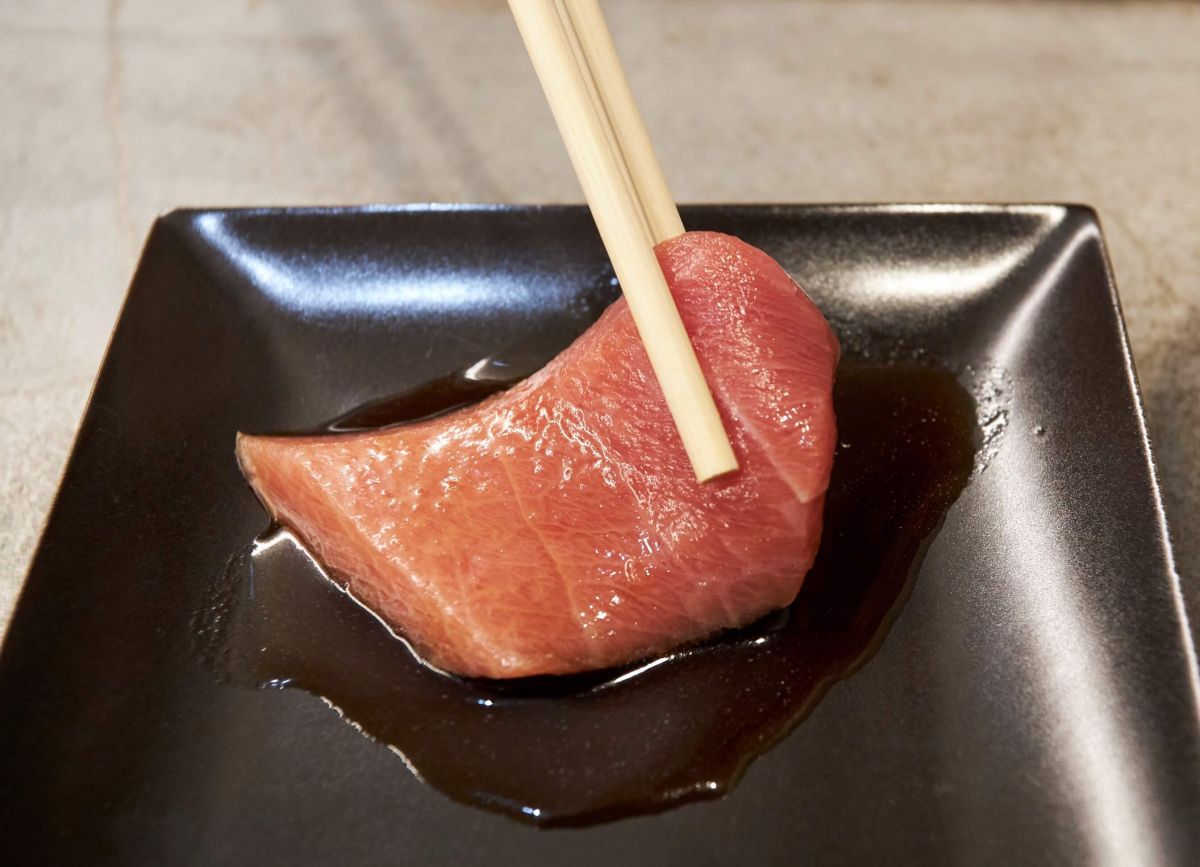 煮切しょうゆは、各カウンター席にも置かれているのでマグロ丼にプラスしたり、こんな風にマグロに付けていただくのもおすすめですよ!
