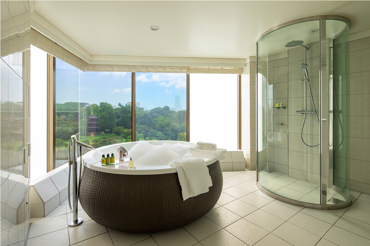 庭園を眺めながらさわやかなヴァーベナの香りに包まれる、心も体も癒やされるバスタイムが過ごせるなんてうれしいですね。