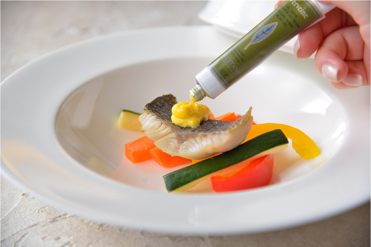 一夜の旅を盛り上げるのは、料理長の十代雅之氏がプロヴァンスから着想を得て作ったヴァーベナやハーブ、シトラス香る南仏料理とデザートの数々。