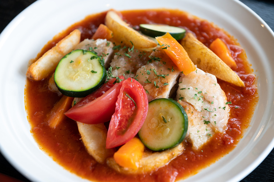 おすすめは「四万十鶏のグリルチキン~松野町産トマトソース添え~」。四万十鶏のモチモチでジューシーなグリル焼きに、松野町産のトマトソースと野菜がたっぷりでとってもヘルシー!四万十鶏はもちろん、野菜のおいしさにも大満足の期間限定メニューです。