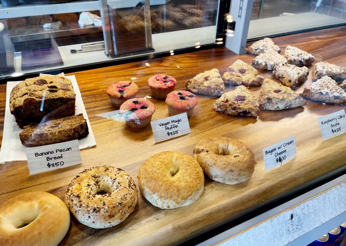 その他、カウンターのショーケースにはマフィンやスコーン、バナナブレッドなどコーヒーに合うスイーツも並べられています。コーヒーとスコーンを購入して、朝ごはんを簡単に済ませるのもありですね!