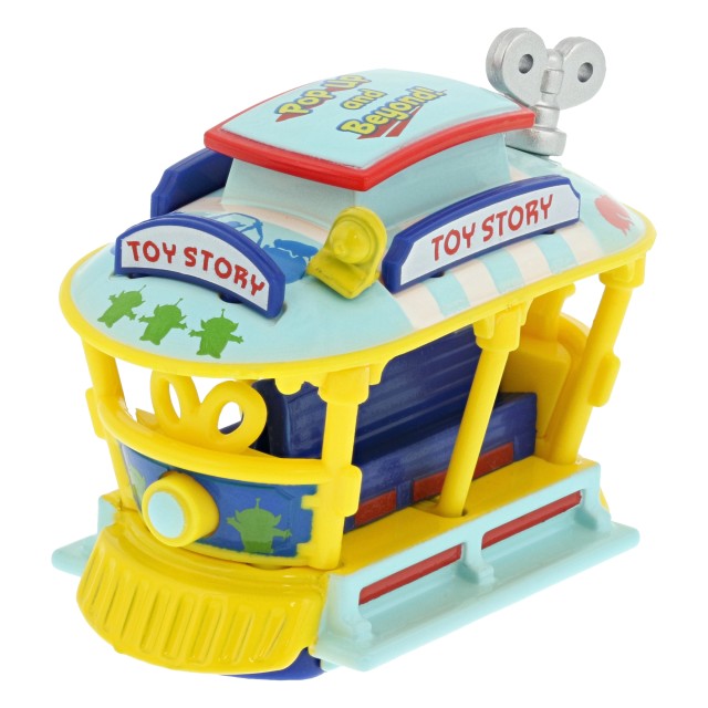トゥーンタウンを走っていた「ジョリートロリー」モチーフのトミカ。トイ・ストーリーデコレーションで登場。