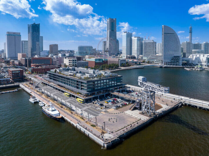 「インターコンチネンタル横浜Pier 8(以下ピアエイト)」があるのは、2019年に完成した複合施設「横浜ハンマーヘッド」。三方を海に囲まれたふ頭に立つ、国内でも珍しいロケーションです。2022年4月にはホテルの目の前に新港8号ビジターバースがオープン。ヨットやプレジャーボートが係留可能になり、洋上からのアクセスもできる新しいスタイルのホテルステイが話題を呼んでいます。