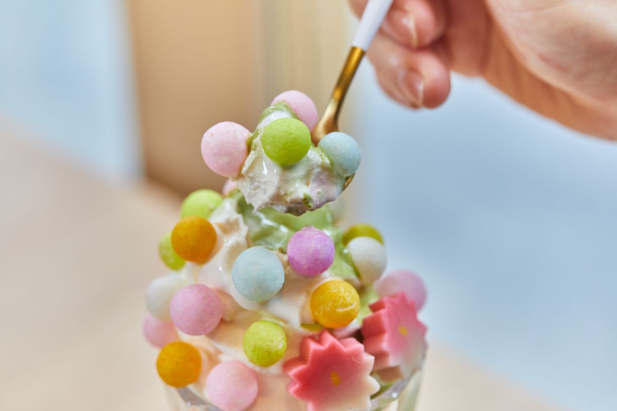 そのランタンとなんともいえずマッチしているのが、こちらの「しあわせ おいりパ麩ェ」。ピンクやイエローなどパステルカラーのおいりがたっぷりのって、とってもキュート。