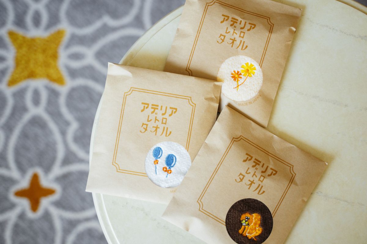 アメニティーとして、「アデリアレトロ」デザインのタオルハンカチも用意されています。こちらは持ち帰りOKですよ。