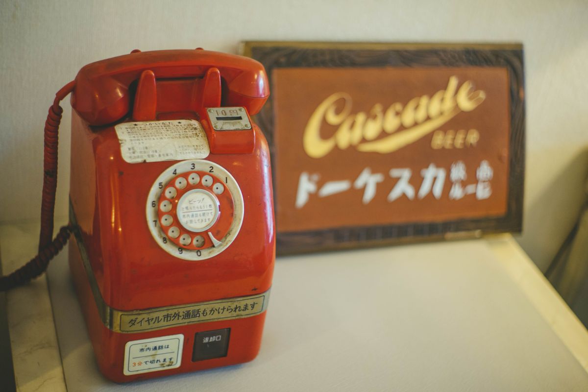 壁に飾られているポスターは、昭和のメイクやファッションがなんとも言えない雰囲気を演出。リビングルームには、今では見かけることない赤い公衆電話や看板などのレトロアイテム、顔はめパネルも用意されていて、部屋全体が撮影スポットとなっています。