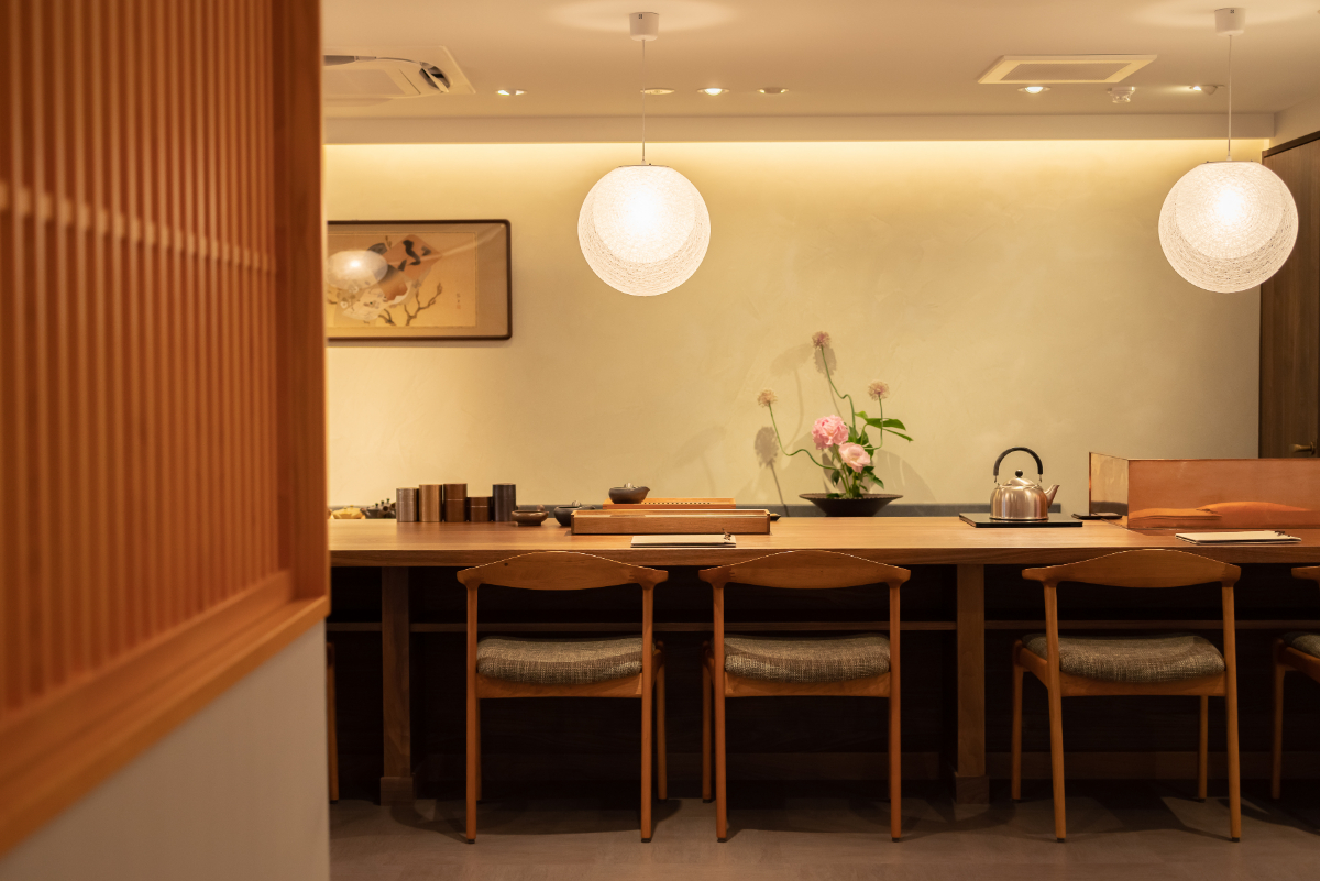 セットに添えられる抹茶や煎茶は、カウンター前で点てられ、淹れられたもの。流れるその手つきは、まるで音楽を奏でるかのようです。