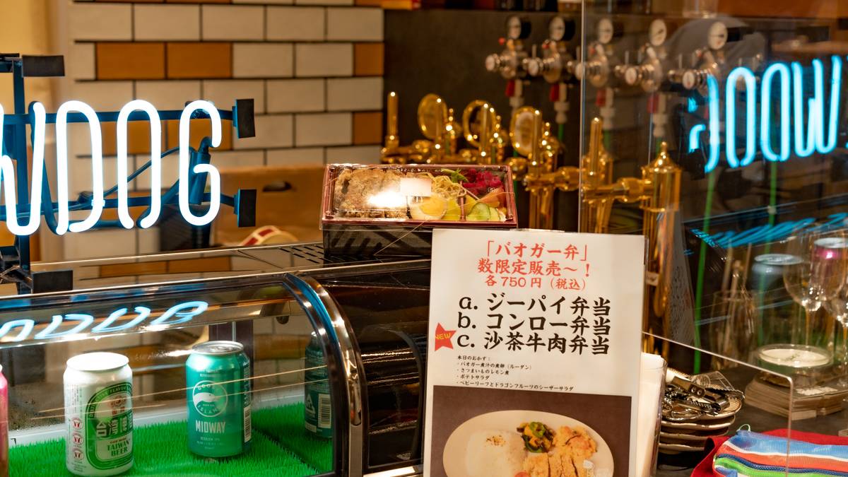 店名である「バオガー」とは、まんじゅうを意味するバオズ(包子)とバーガー(Burger)をかけ合わせた造語。その名のとおり、トラディショナルな台湾フードをアレンジしたファストフードがメニューの中心ですが、新店舗では樽生のクラフトビールをはじめ、台湾ビールやグラスワインなども取り揃えています。台湾の伝統食を盛り込んだお弁当も数量限定で販売中!