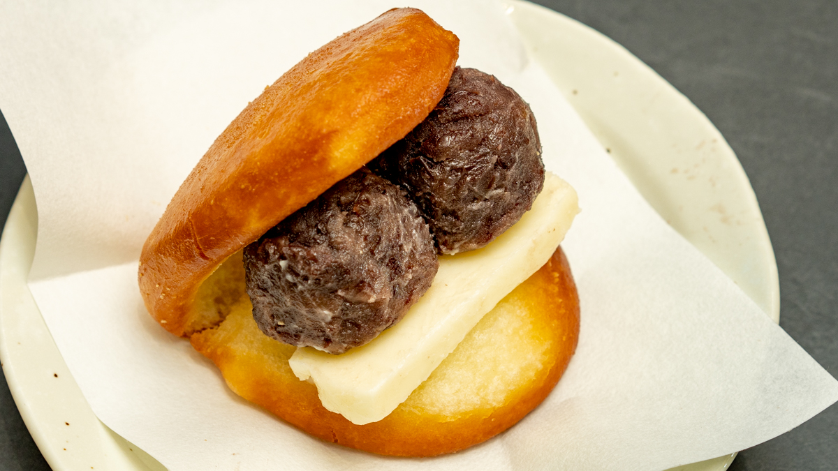 食後や軽食にぴったりなのが、小さめのバオズ(包子)をカリッと揚げてバターとあんこを挟んだ「揚げバオあんバター」500円。蒸している状態とは異なりカリッカリの食感です。あんドーナツ感覚ながらひと味違う、台湾、日本、アメリカの食文化が融合した新感覚スイーツに仕上がっていました。