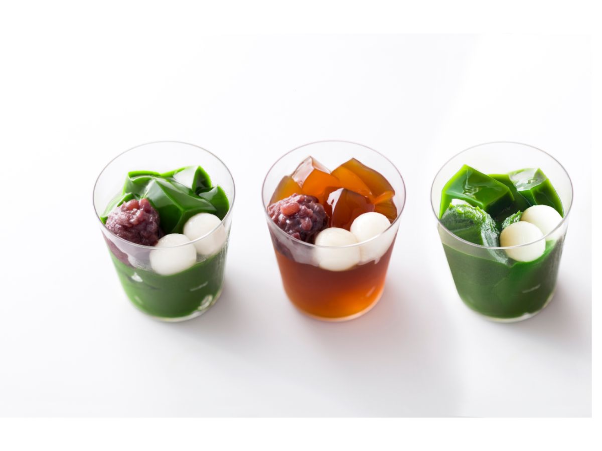 美味しさの秘訣は、毎日石臼でひいたフレッシュな茶葉を使用して、甘味を最小限に抑えているので、抹茶本来の香りとほろ苦さが楽しめること。つるん、ぷるんとしたやわらかい食感と、なめらかなのど越しが夏のお茶菓子に嬉しい、クセになるおいしさです。