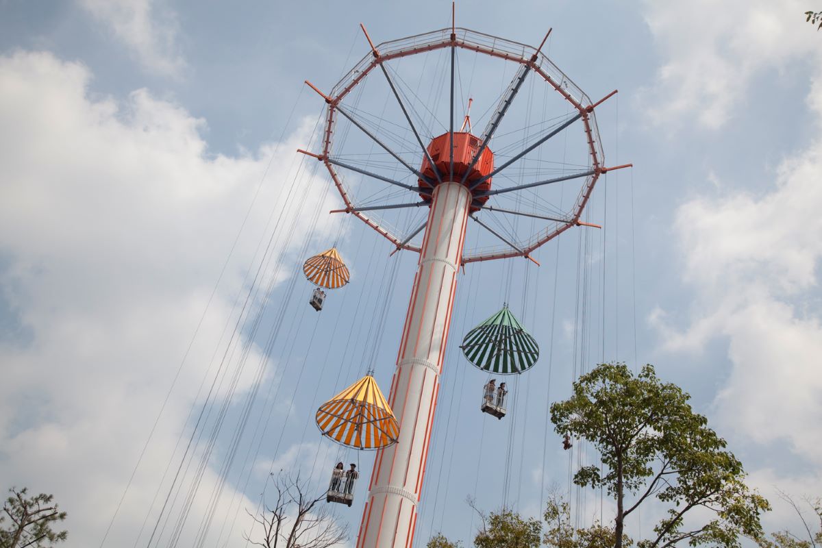 最後にご紹介するのは「パラシュートゾーン」の「スカイフラワー」。足元が透けたかごはするすると上まで上がっていき、一番高いところに上がったときの高さは61m!下から見ているとあまり感じないのですが、実は見た目以上のスピード感で降下するアトラクションで、「東京ドームシティ アトラクションズ」のなかでもスリリングさNo.1だと言う人も多いんだとか。余裕のある人は、ぜひ周りの景色も楽しんでくださいね!
