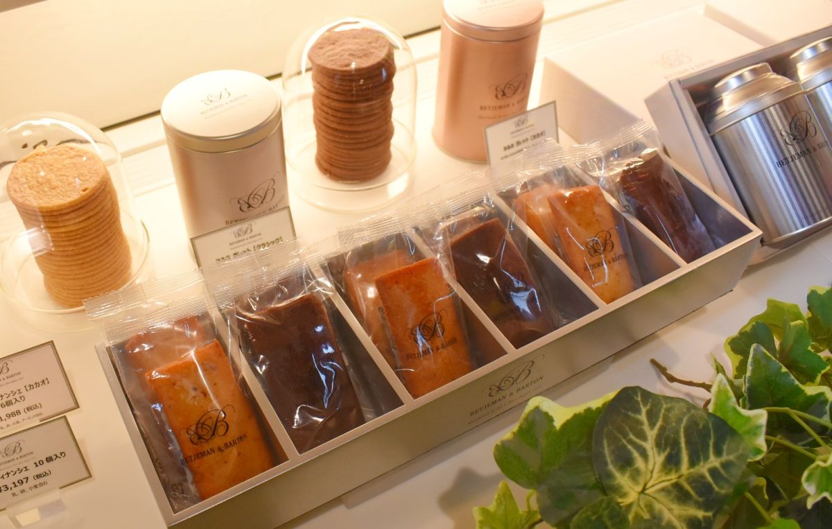 紅茶と相性のいいオリジナルの焼菓子も揃うので、ぜひ一緒に。フランスで“丸く焼いたもの”の意味をもつ、サクサクの焼菓子ガレット23枚入り2700円(写真奥)や、焦がしバターの風味がたまらないフィナンシェ6個1988円(写真手前)など、上質な味わいのスイーツは手土産としても喜ばれそうです。