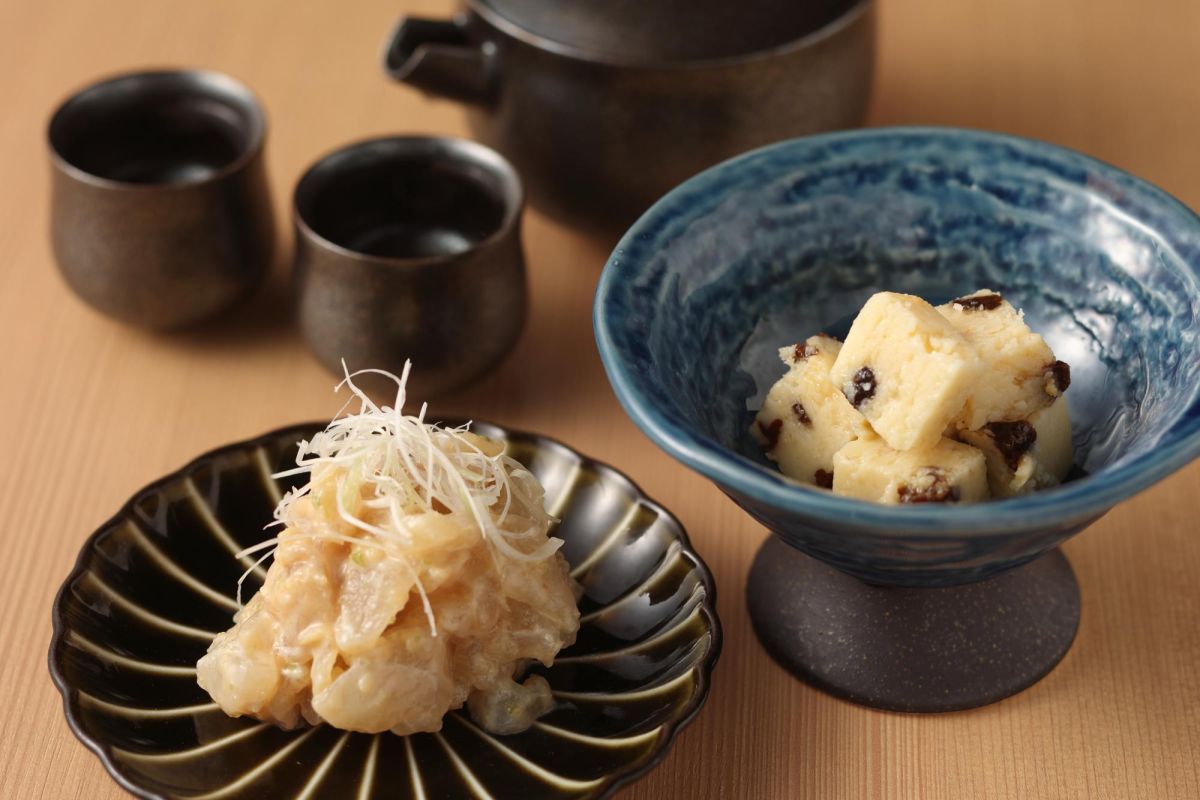 夜にも、ディナー用のプレートメニューがありますが、酒粕を使ったオリジナルの一品料理も豊富に揃っています。迷ったらまず頼んでもらいたいのが、「鯛の酒粕なめろう」869円と「酒粕レーズンバター」539円。お馴染みのなめろうとレーズンバターに、酒粕の風味が加わり、日本酒に合わないはずがありません。