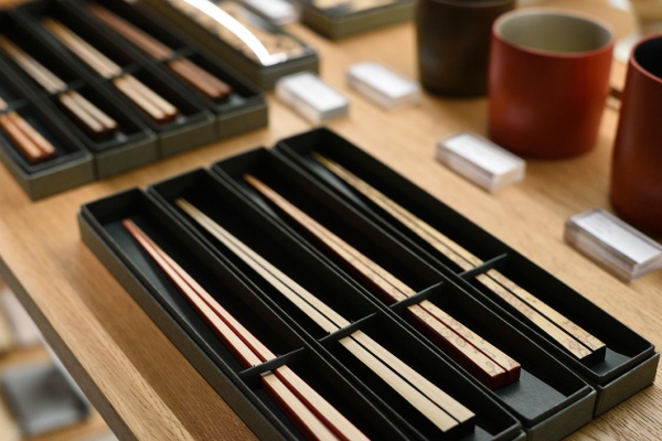 昨今、サステナブルな素材として世界的に注目されている竹。長岡京市を拠点に製造・販売を行ってきた「高野竹工」は、茶道具から日用品にいたるまで多彩な商品を手がける老舗です。竹は縁起の良いモチーフでもあるので、手に馴染む竹のお箸3520円はお祝いごとのギフトにぴったりです。もし漆が剥がれても工房でメンテナンスしてくれるそうですよ(有料)。