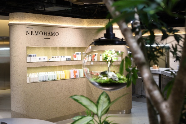 同じ3階には、オリジナルコスメブランド「NEMOHAMO」のショップも。キープラントとなるオタネニンジンをはじめ、ツバキ、コメヌカ、アカシソ、クロモジといった植物由来のオリジナルコスメ「NEMOHAMO」は、特に大人女性からの支持が厚いコスメブランド。根も葉も、茎も花も実も、植物をまるごとエキス化している、そんなこだわりのコスメは自分へのごぼうびにもピッタリですね。