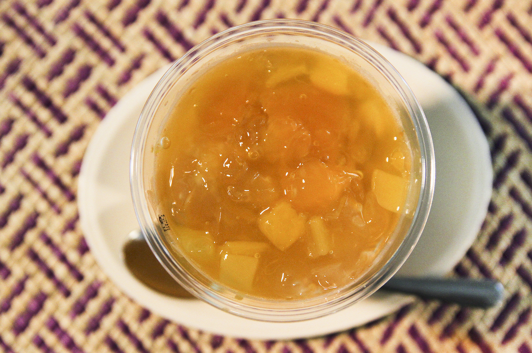 終盤はストレートに、マンゴーの甘さと酸味がたっぷり詰まったマンゴープリンを味わいましょう。ねっとりしながら、口溶けは滑らか。やさしい余韻も楽しめます。