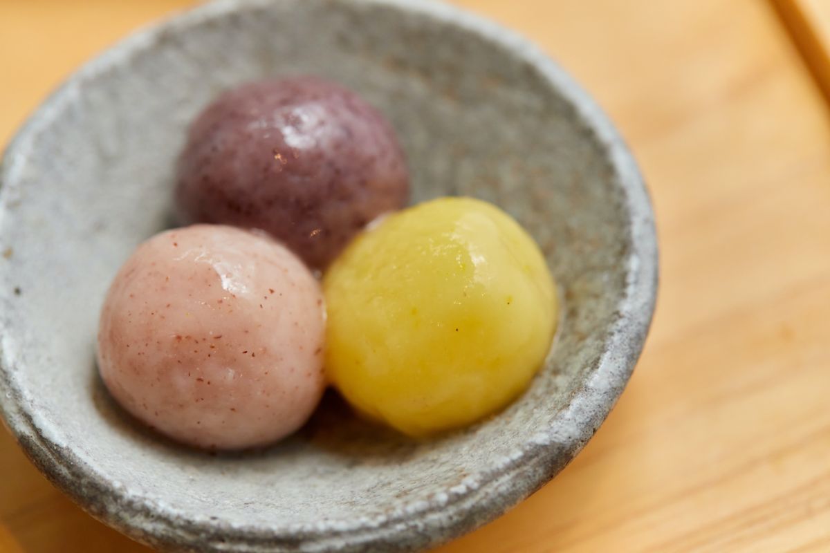白玉も雑穀店ならではのひとひねり。団子のなかに古代米と日本みかんの原種である橘、そして豆腐を練り込んで、もちもちです。