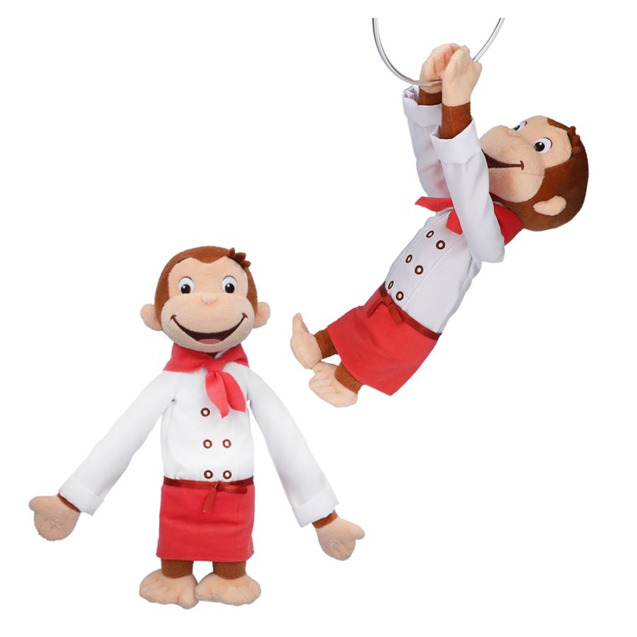 さらに会期途中から追加で販売される予定なのが「シェフジョージ ぶらぶらぬいぐるみ」4620円。コックコートなど細部までこだわった仕上がりが特徴です。手の平にスナップボタンがついたオリジナルデザインで、いろいろな場所に取り付けることができますよ。