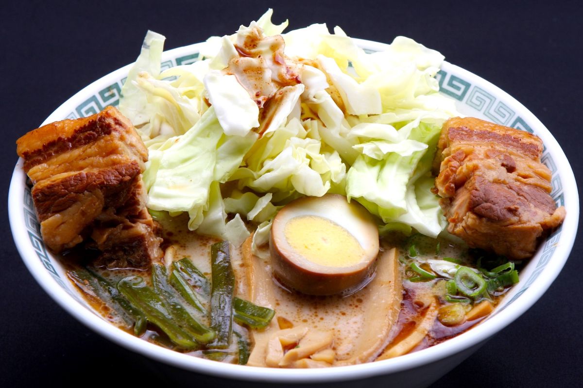人気No.1の太肉麺1150円は、豚骨と鶏ガラからとったWスープに自家製チャーシューやたっぷりの生キャベツ、味付け玉子などをトッピング。今や全国区となった、本場の熊本ラーメンを召し上がれ。